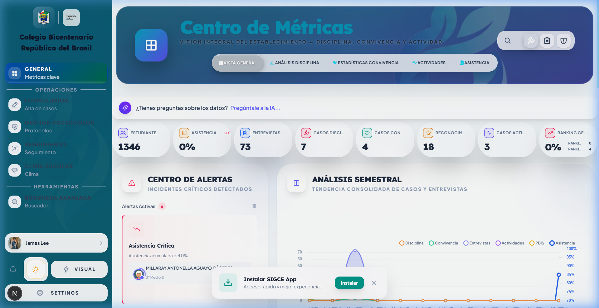 Una interfaz que se adapta a cada usuario — desde el encargado de convivencia hasta el director.